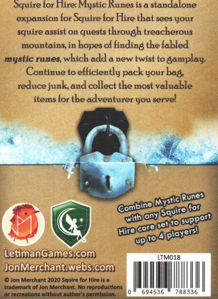 From Letiman Games: Squire for Hire: Mystic Runes is a standalone game compatible with… mehr Menü schließen Produktinformationen „Squire for Hire: Mystic Runes“