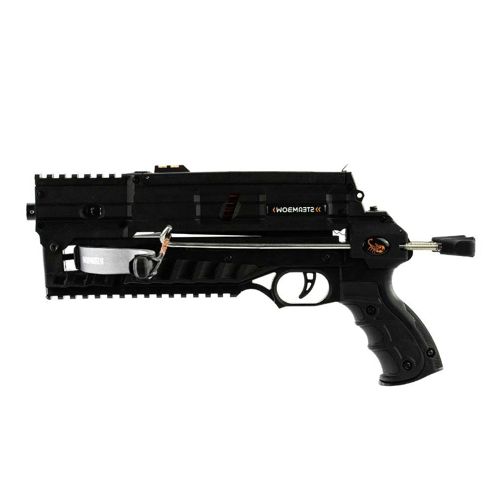 Steambow Stinger 2 Compact 35 Ibs– 6 Schuss Repetierarmbrustpistole ist eine leichte und kompakte Pistolenarmbrust mit einem 6-schüssigen Magazin. Die Compact-Variante ist kompatibel mit allen anderen AR-6 Stinger II Varianten und kann mit entsprechendem Zubehör vielfältig umgebaut werden. Hergestellt aus hochwertigem Polymer, damit extrem robust, sehr zuverlässig und durch die präzise Fertigung auf Distanzen bis 25 Meter zielgenau.
