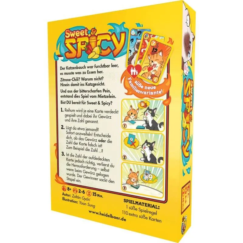 Sweet & Spicy ist Ecofriendly. Das heißt, dass es in in einer Fabrik hergestellt wurde, die ausschließlich mit erneuerbaren Energien arbeitet und aus biologisch abbaubaren oder recyclebaren Elementen hergestellt wurde. Die Karten sind liebevoll mit insgesamt 40 eigenständigen Illustrationen versehen.