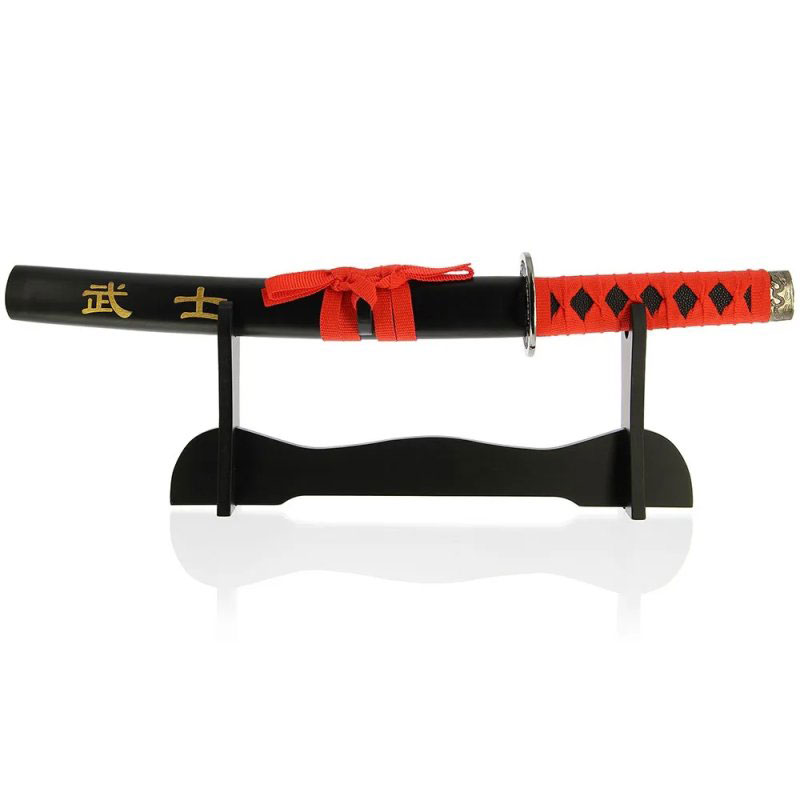 Tanto Katana Schwert rotmit Klinge aus 420er Edelstahl und Tischständer. Griff im rot-schwarzem Design inklusive Saya mit chinesischen Schriftzeichen