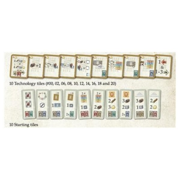 Die neuen Startplättchen bieten Ihnen verschiedene Möglichkeiten zum Experimentieren und können sowohl mit dem Basisspiel als auch mit der ersten Erweiterung gespielt werden.