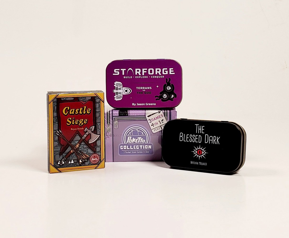The Poketto Collection is a unique bundle bringing together three easy to play, easy to travel games. In addition to traveling anywhere, This 3-pack brings three tabletop theme favorites to the table: Science Fiction, Fantasy, and Horror.
