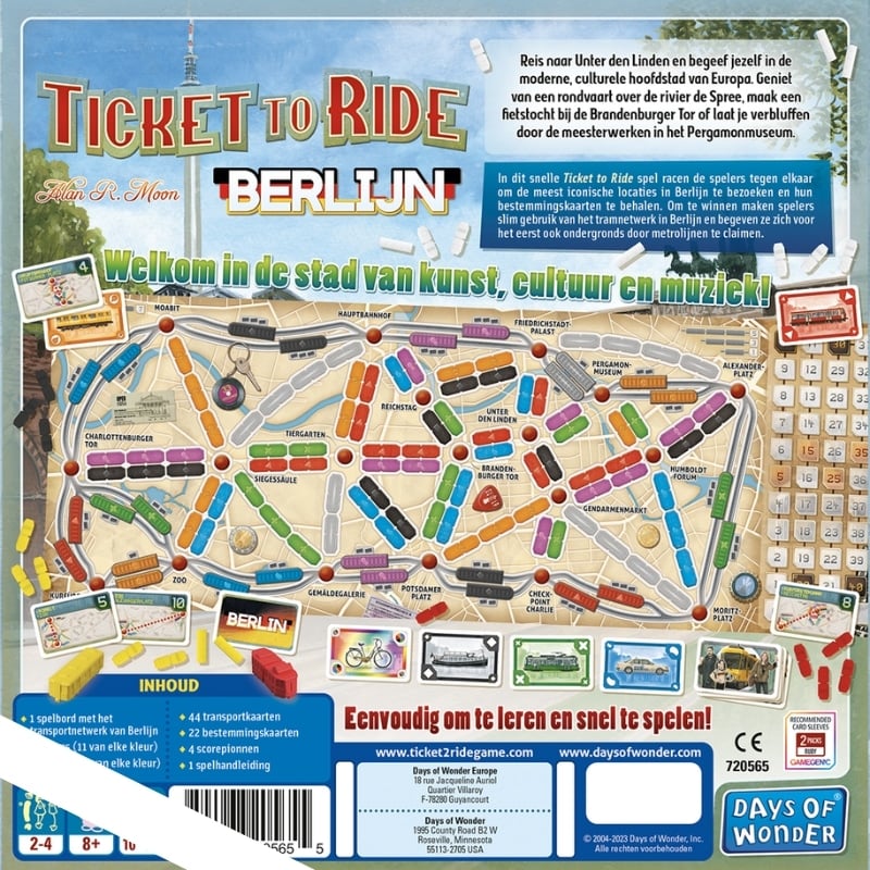 In diesem rasanten Ticket-to-Ride-Spiel treten die Spieler gegeneinander an, um die berühmtesten Orte in Berlin zu besuchen und ihre Zieltickets zu verdienen. Um zu gewinnen, nutzen die Spieler geschickt das Berliner Straßenbahnnetz und wagen sich zum ersten Mal in die U-Bahn, indem sie U-Bahn-Linien beanspruchen.