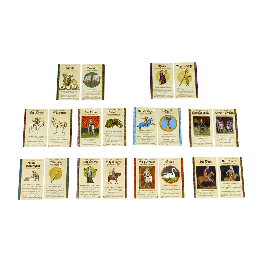 You play as a legendary character, battling opponents with weapon cards—Arrows, Swords, Deception, Sorcery, and even Alchemy. The more you injure your opponents, the better you fare in the tournament. However, even the most injured characters can make a complete comeback with the grace of Godsend cards and the aid of their special Companions. This trick-taking game ends when one opponent has been injured to the point of death. The player with the most health is then declared the Tournament victor!