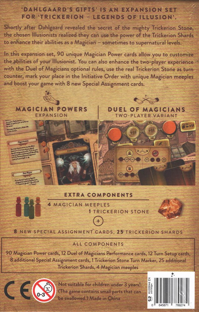 Your Trickerion Shards gain a whole new gameplay significance with the Magician Powers variant: they will unlock Power Card slots that allow you to customize your Magician by learning diverse abilities to enhance your game. As there are 90 different Power cards available, it will open up a multitude of new strategies and adds even more replayability to the game.