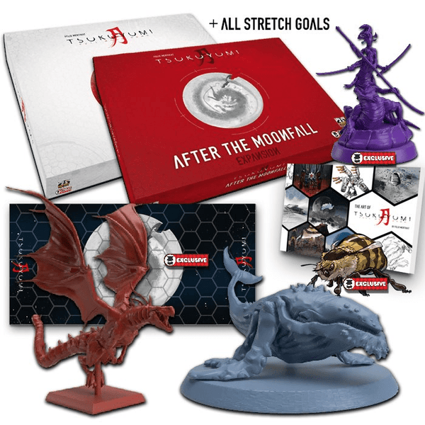 Content Notes:Kickstarter Exclusive „All-in“ Pledge for Tsukuyumi: Full Moon Down by Grey Fox Games. Includes Tsukuyumi Base Game, After the Moonfall Expansion, Rise of the Moon Princess, Tsukuyumi Double-Sided Playmat, Fireborn Faction, Lords of the Lost Sea Faction, Tsukuyumi Art Book, Kickstarter Exclusives and all unlocked stretch goals. Please note: unless otherwise stated paid add ons from the Kickstarter Campaign are not included.