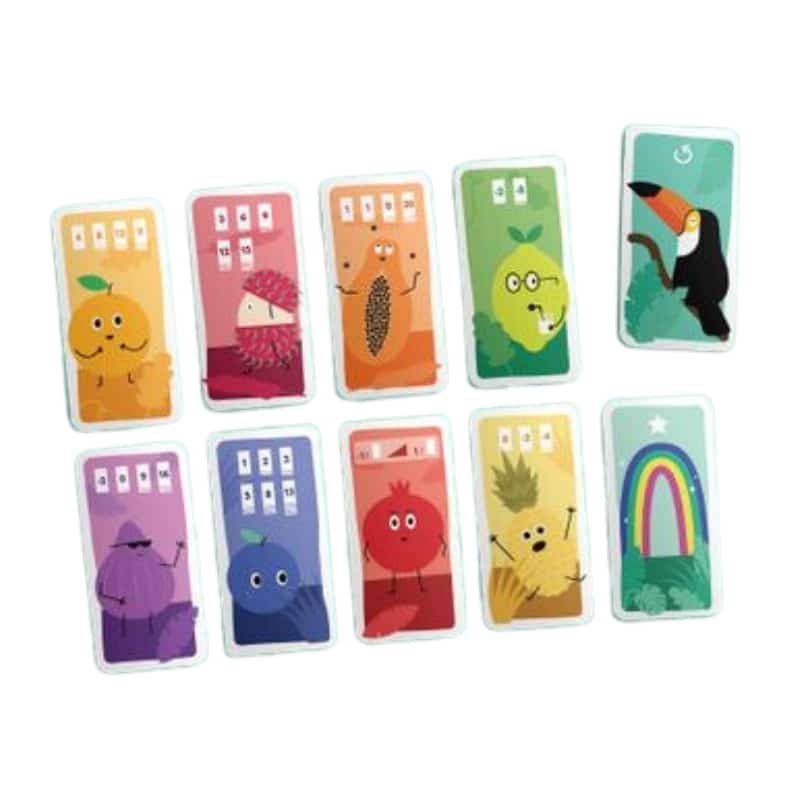 Der Spielzug ist ganz einfach: Wählen Sie einen der drei Kartenstapel aus und legen Sie dann auf jeden Stapel eine neue Karte. Es liegt an Ihnen, die besten taktischen Entscheidungen zu treffen, um den Sieg zu sichern und die verdorbenen Früchte Ihren Gegnern zu überlassen. Ein farbenfrohes und cleveres Strategiespiel mit einfachen Regeln, geeignet für Kinder und Erwachsene!