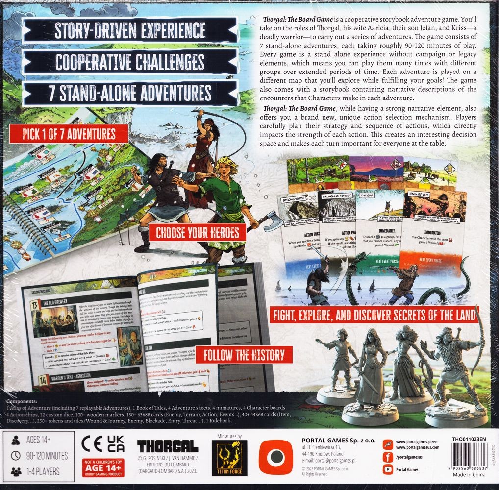 Players take on the roles of Thorgal, his wife Aaricia, their son Jolan, and Kriss, a deadly female warrior, and go on a series of adventures. The game consists of 7 stand-alone scenarios, each taking roughly 90-120 minutes of play. Scenarios do not form a campaign nor have any legacy features, so they can be played by different playgroups and over an extended period of time.
