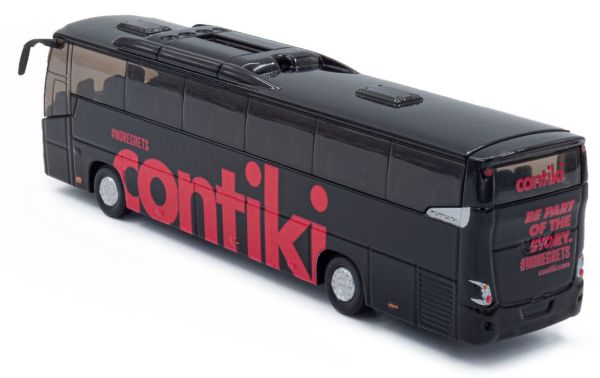 VDL Futura Contiki; schwarzer Sightseeing-Bus mit roten Markierungen