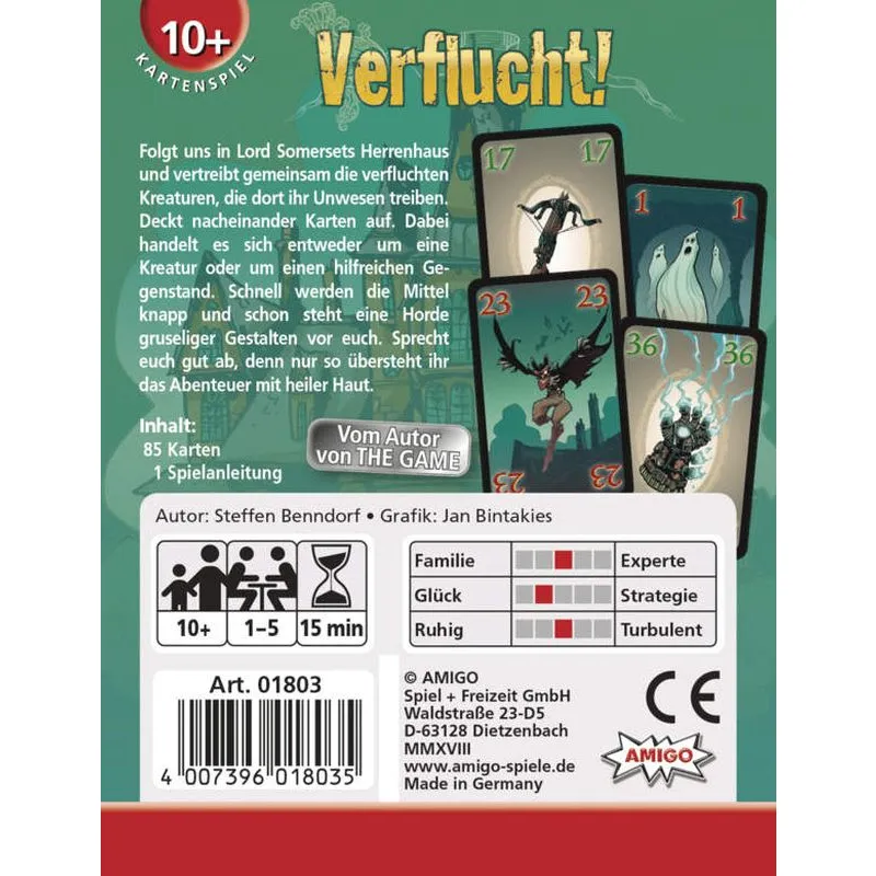 Folgt uns in Lord Somersets Herrenhaus und vertreibt gemeinsam die verfluchten Kreaturen, die dort ihr Unwesen treiben. Deckt nacheinander Karten auf. Dabei handelt es sich entweder um eine Kreatur oder um einen hilfreichen Gegenstand. Schnell werden die Mittel knapp und schon steht eine Horde gruseliger Gestalten vor euch. Sprecht euch gut ab, denn nur so übersteht ihr das Abenteuer mit heiler Haut.