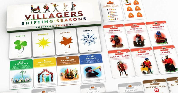 Players:1 to 5 Published:2022 Content Notes:Kickstarter Edition Villagers Shifting Seasons Board Game Expansion Bundle by Sinister Fish Games. Includes Shifting Seasons Expansion, Coin Chest, Play Mat, Promo Pack 1, and all unlocked stretch goals (bundled in the Stretch Goal Expansion Pack). This is an expansion for Villagers board game. Requires core game to play. Please note: unless otherwise stated paid add ons from the Kickstarter Campaign are not included. Through the year various traditions, visitors, and events give the villages interesting opportunities for business and expansion. Shifting Seasons features several new modules for the Villagers base game, allowing for greater variability, more opportunity, and even more crucial decisions. The expansion adds enough new cards and official rules for games to last an extra round on average, allowing players to build even bigger and better villages! – Event cards offer new actions and scoring opportunities for all players. – Powerful new Special villagers like the Engineer, Inventor, and Merchant offer rule-bending abilities. – A whole new suit of villagers allows for longer games at 4 & 5 players, or can be used to mix up any game by replacing the Grapes suit. – Teams are a new villager type that can be recruited at any time to add an extra food or build icon. – A new way to play solo: The Monastery Solo Mode offers a more relaxed single player experience. –from publisher