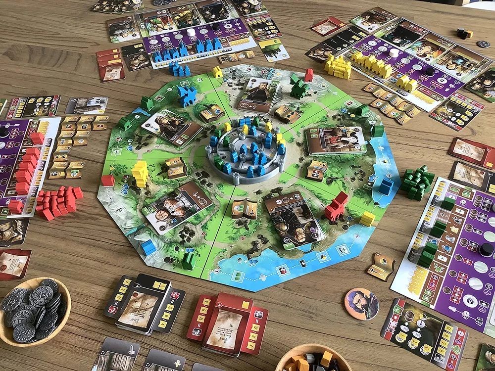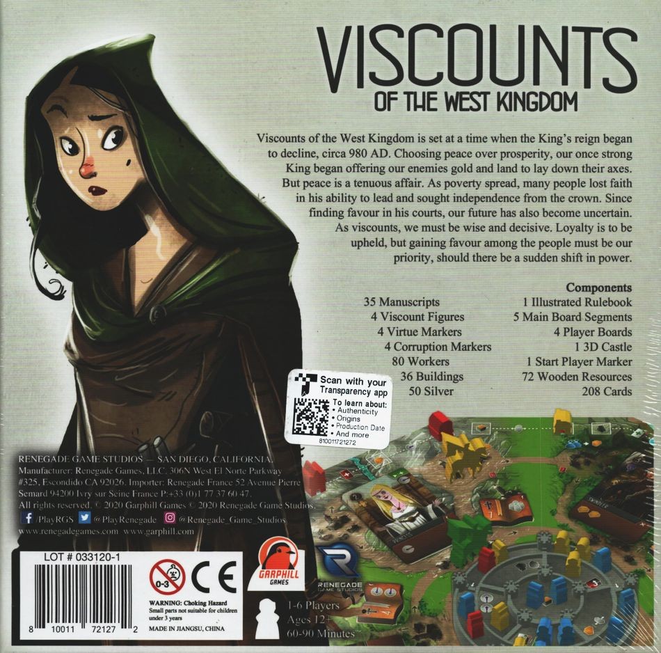 The aim of Viscounts of the West Kingdomis to be the player with the most victory points (VP) at game’s end. Points are gained by constructing buildings, writing manuscripts, working in the castle and acquiring deeds for new land. Players begin with a handful of townsfolk, but should quickly seek out more suitable talents to advance their endeavours. Each turn they will be travelling around the kingdom, looking to increase their influence among the various areas of society.