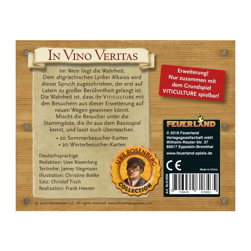 Im Wein liegt die Wahrheit. Dem altgriechischen Lyriker Alkaios wird dieser Spruch zugeschrieben, der erst auf Latein zu großer Berühmtheit gelangt ist. Die Wahrheit ist, dass ihr Viticulture mit den Besuchern aus dieser Erweiterung auf neuen Wegen gewinnen könnt.