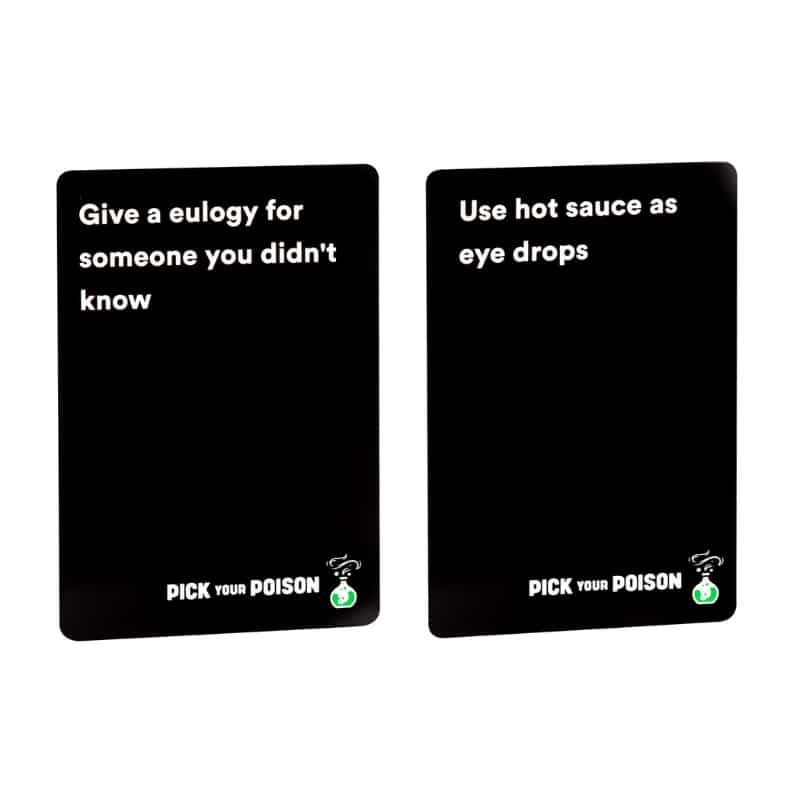 Pick Your Poison ist ein Kartenspiel mit der unglaublichen Frage „Was würdest du lieber tun?“ Szenarien.