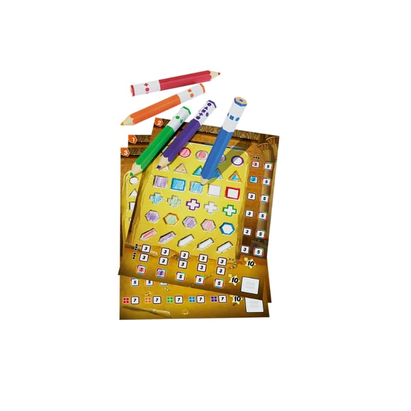 Die Pick-a-Pen-Reihe ist eine neue Generation innovativer „Roll & Write“-Spiele, bei denen es tatsächlich um das Rollen von Bleistiften geht. Dadurch wird gewährleistet, dass mit dem gleichen Spielmaterial viele unterschiedliche Spielmechanismen ermöglicht werden. Aber das Ausmalen von Feldern ist in jedem Spiel von zentraler Bedeutung. Erzielen Sie die meisten Punkte?