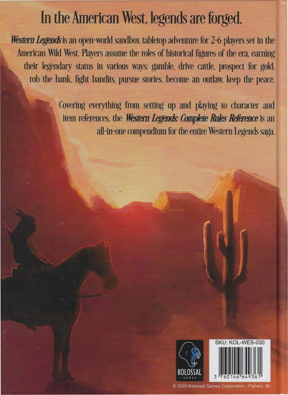 Covering everything from setting up and playing to character and item references, the Western Legends: Complete Rules Referenceis an all-in-one compendium for the entire Western Legendssaga.