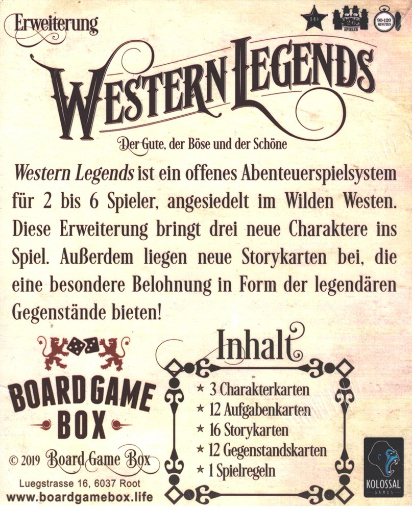 „Western Legends“ wird benötigt um die Erweiterung „Der Gute, der Böse und der Schöne“ zu spielen.