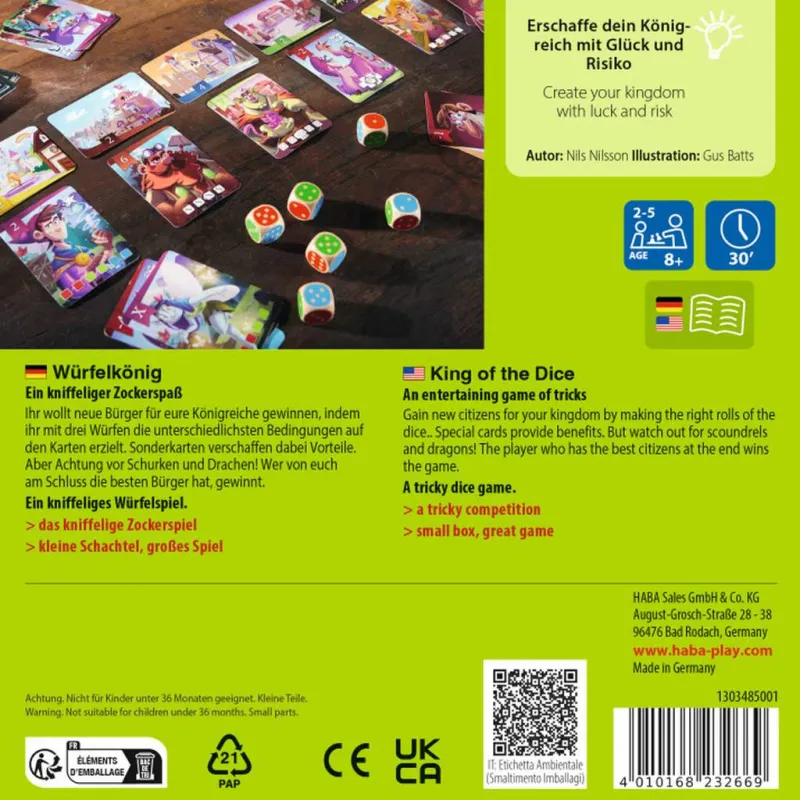 Gewinne neue Bürger für dein Königreich, indem du mit drei Würfeln die unterschiedlichsten Bedingungen auf den Karten erzielst. Sonderkarten verschaffen dir Vorteile. Aber hüte dich vor Dorftrotteln und Drachen. Wer am Schluss die besten Bürger hat, gewinnt.